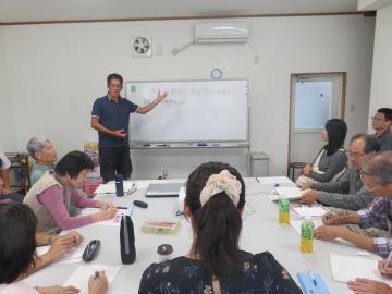 特定非営利活動法人場とつながりラボhome'sviの山本彩代さんの司会のもと、受講生・講師・職員が円になって、自分が呼ばれたい名前や最近あったgoodnewsなど自己紹介をしました。