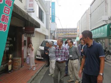 (2)キララ商店街事業協同組合理事長の田原剛さんから、いす‐1グランプリなど商店街で行われている取り組みやそれにかける思いなどをお話ししていただいたあと、商店街の中を実際に案内していただきました。