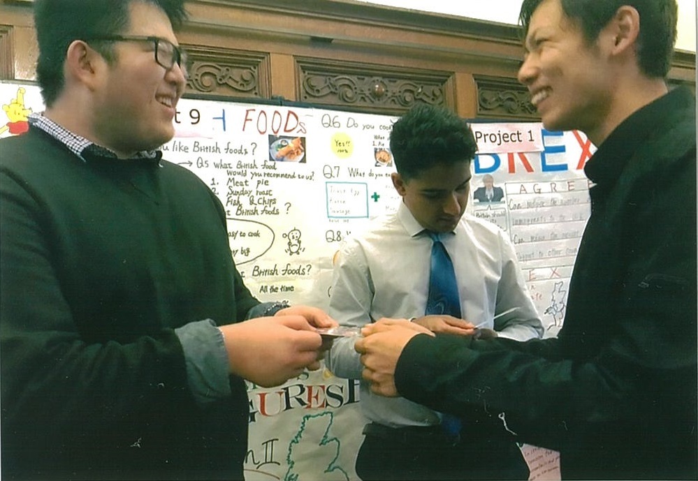 現役でキール大学で学んでいる人達や留学生、先生方に、ブリティッシュフードのイメージを聞いたり、オススメの食べ物などを聞いたりしました。また、日本食のイメージを聞いたり、ディスカッションを行って、食文化を通じて交流を深めました。