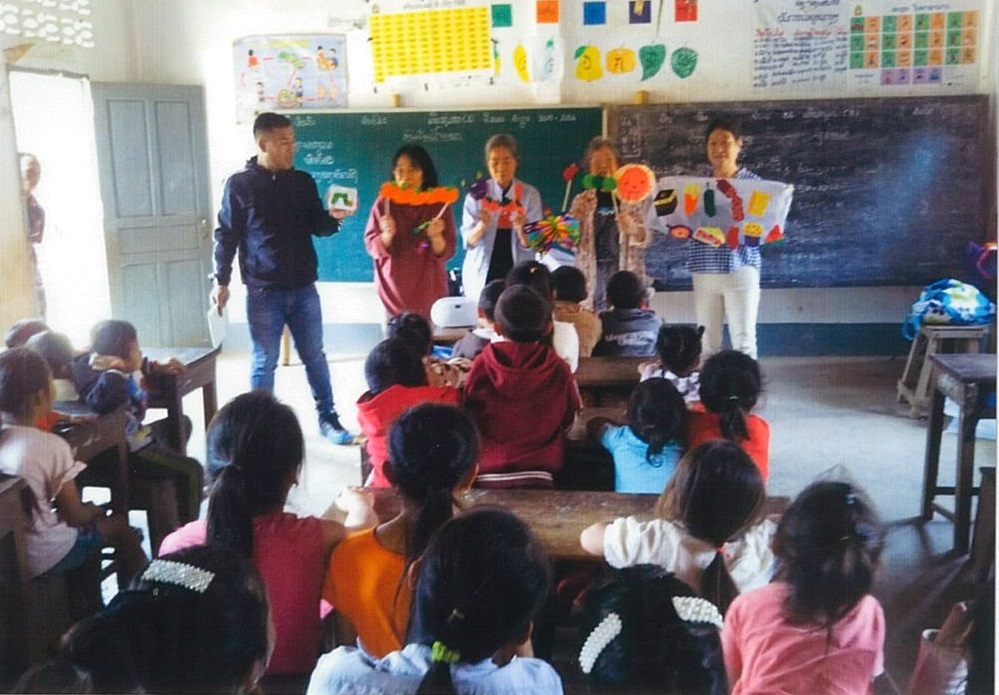 小学校の児童達との交流では、歌を唄って手遊びしたり、人形劇でお腹痛の太郎君の話から手洗い教室をしました。簡単な手品では、みんなが目を丸くして喜んでくれました。同行スタッフと卵焼きを作ってふりかけご飯で給食をして、文房具や歯ブラシをプレゼントしました。また、高校の女子寮では寮生と日常生活の話をきいたりラーメンや歯ブラシ、女学生の好きそうな小物などをプレゼントしました。また、扇風機とシャワー室の囲いが欲しいとのことで、提供を約束しました。