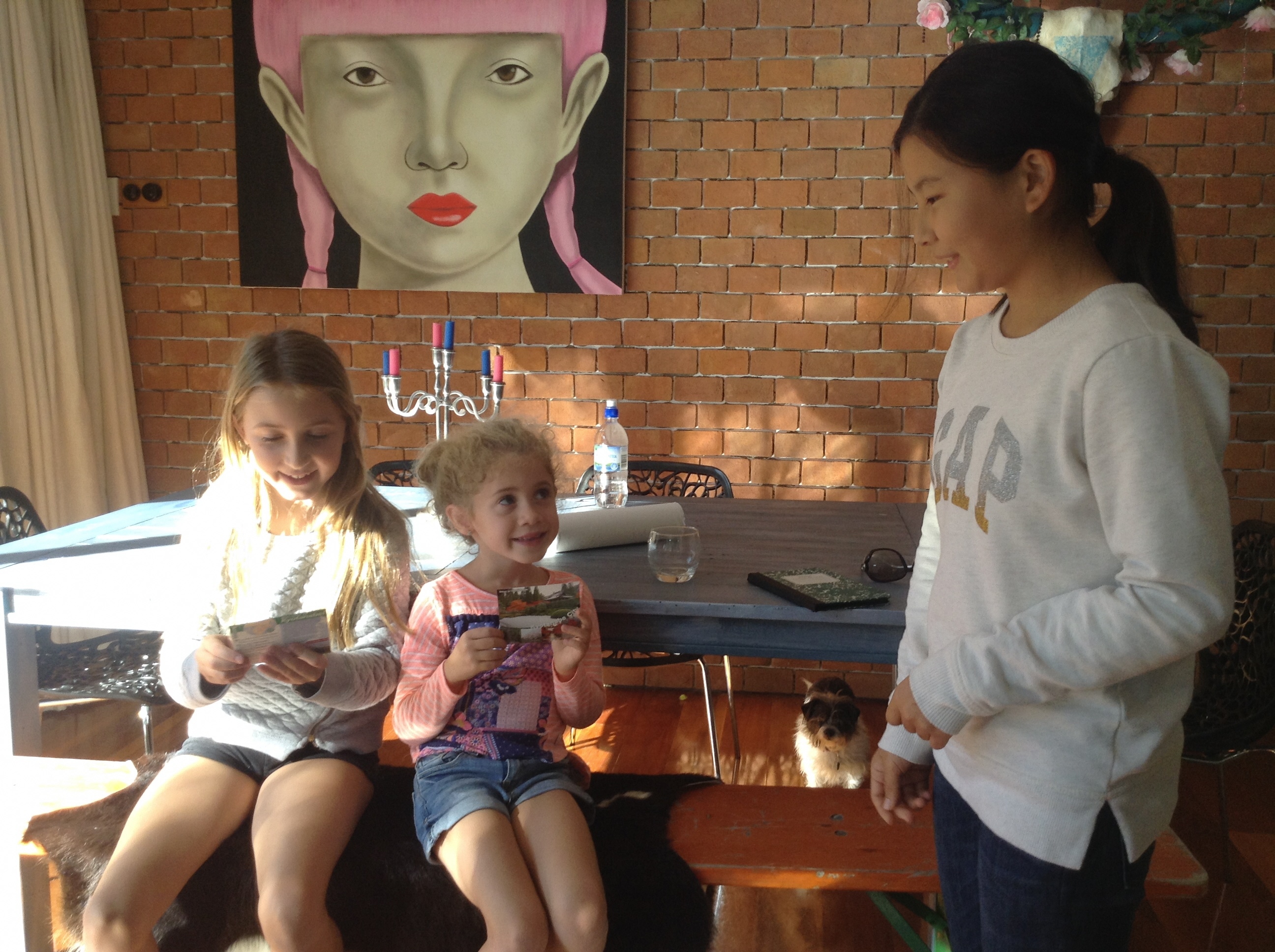 ホームステイ先の親戚に京田辺PRカードを渡した時の様子