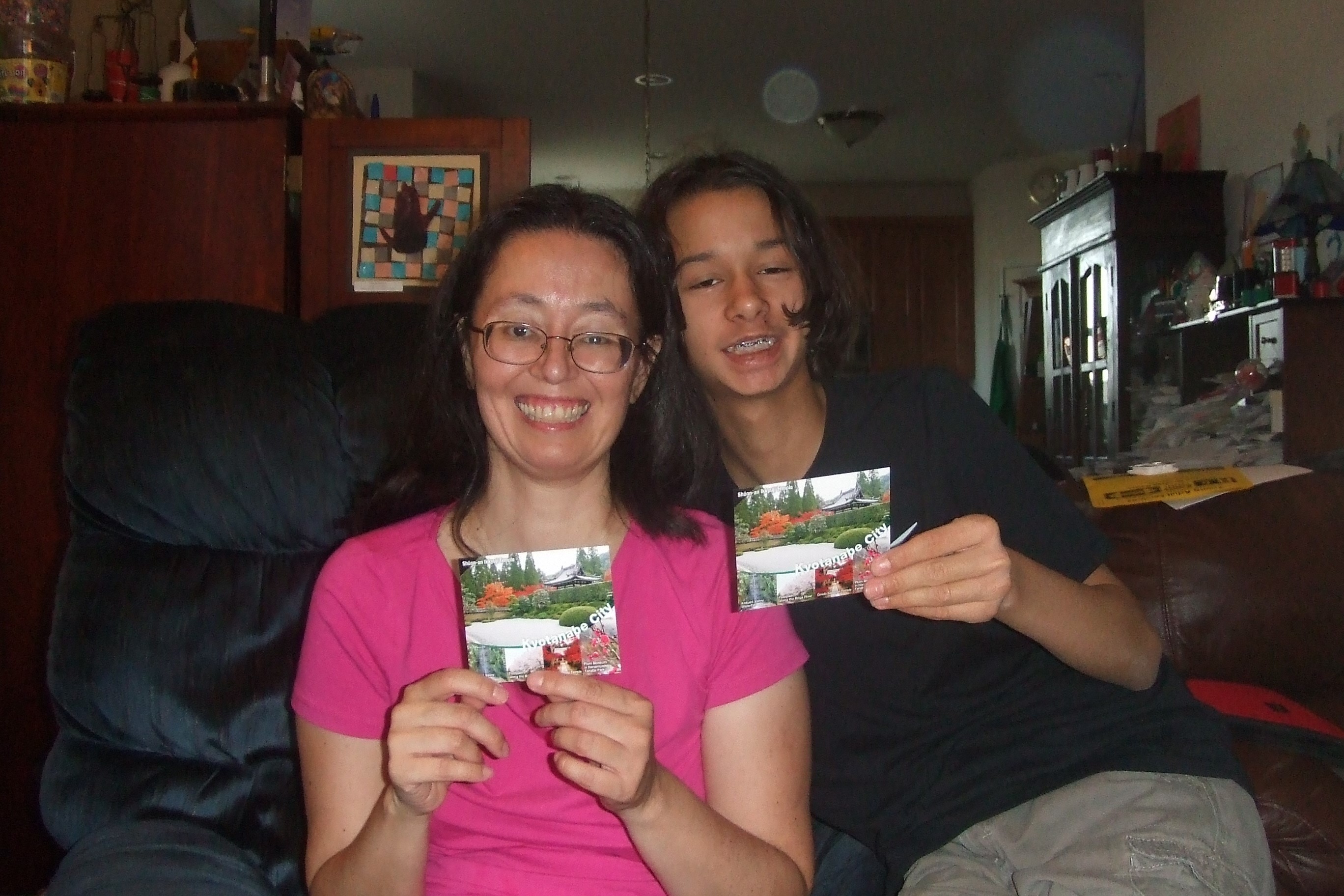 ホストファミリーに京田辺PRカードを渡した時の様子