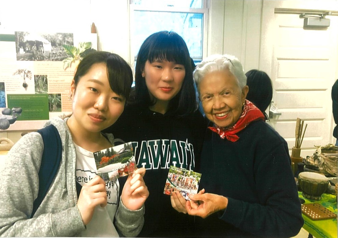 現地では、さまざまな人たちと出会うことができました。同年代で実際に大学に留学している日本人の人たちやハワイで日本語を学んでいる小学生など、人種や年齢を問わず交流することができたと思います。現地の日本語学校では、日本の歌や踊りを一緒に歌ったり踊ったりして、文化の壁を越えて交流できました。