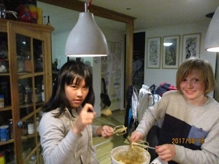 家の中をくつで歩きまわることは、とても日本と違うことだと思いました。見知らぬ人同士が、にこやかにあいさつし、立ち止まって話しをする、ということも、私には、日本人の人との接し方とは、とても異なって見えました。日本では、あまり感じられない知らない人との距離の近さを感じることができました。