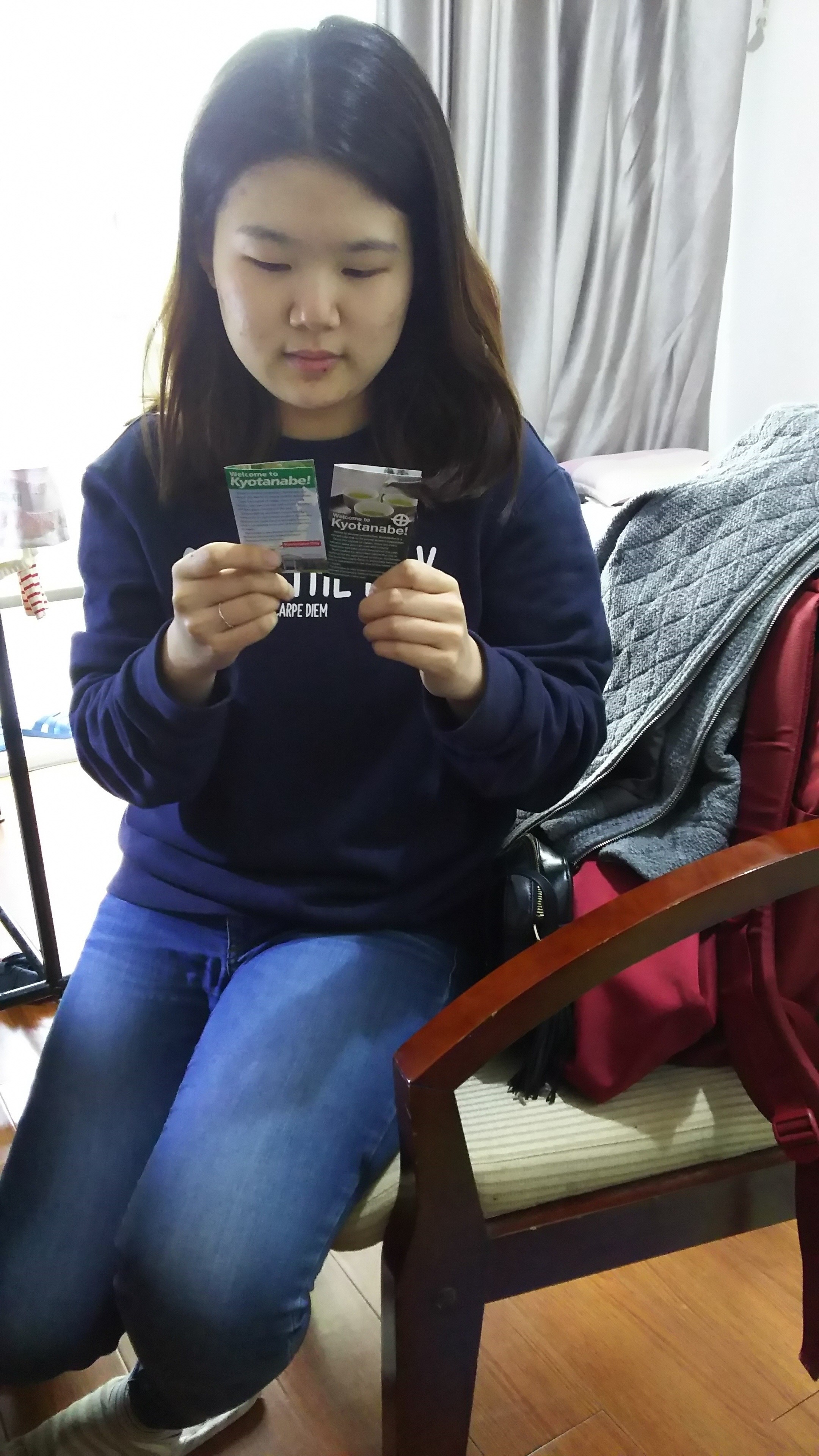 中国や韓国など日本から近い国の人はかなりの確率で京都や大阪を知っていたので京田辺市の場所を分かってもらいやすかったです。皆まずPRカードのきれいさに驚いていました。特に一休寺や桜など日本っぽいイメージの写真を喜んで眺めていました。お茶が好きという中国人の友達は玉露を飲んでみたい、とすごく興味を示してくれました。