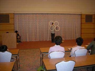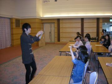 マジックショーやジャグリングショーを行い、その後、簡単なマジックの伝授やジャグリング体験(バルーンアート)を行いました。