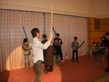 参加者も一緒に、ジャグリングのバルーンアートを行いました。