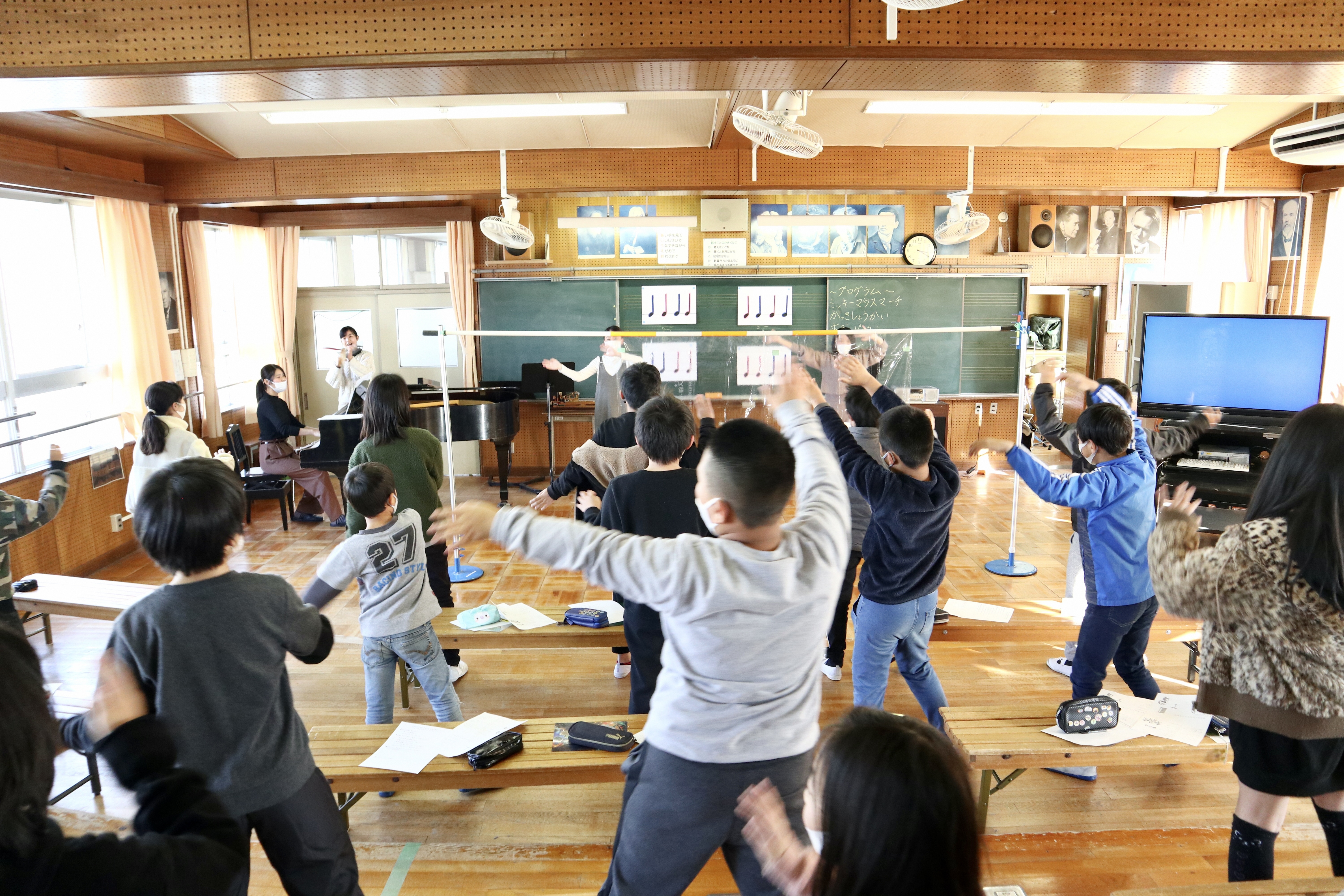 学生は、本公演に向けて事前に小学校の先生方から授業プログラムの希望等を聴取し、新型コロナウイルス感染症対策についても打合せを行うなど、コロナ禍での公演実現に向けて準備や練習を重ねてきました。