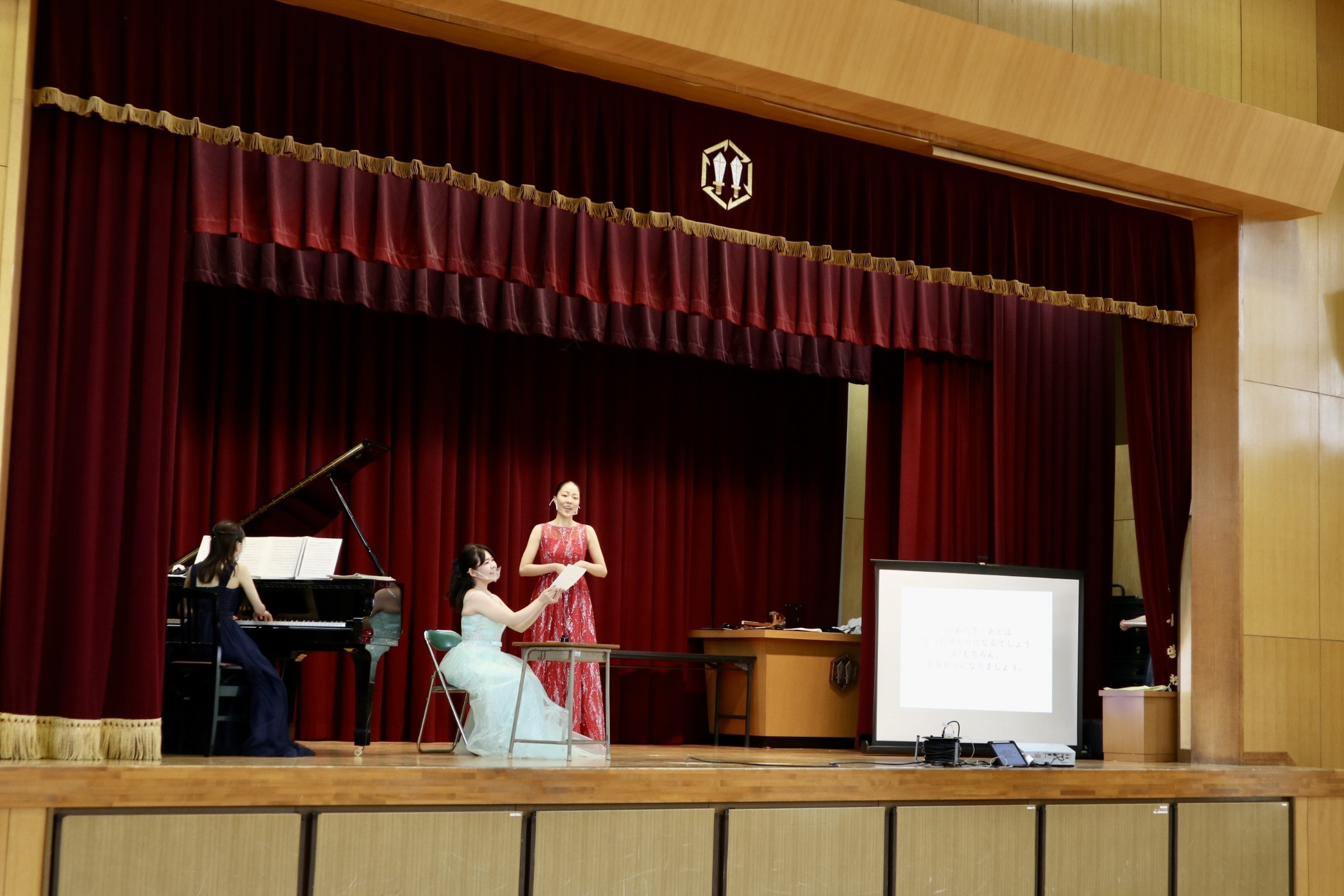 京田辺市と同志社女子大学との連携事業の一環として、同志社女子大学 学芸学部 音楽学科の授業「音楽によるアウトリーチ」履修生15名が、普賢寺小学校と三山木小学校の2校を訪問し、音楽公演を実施しました。