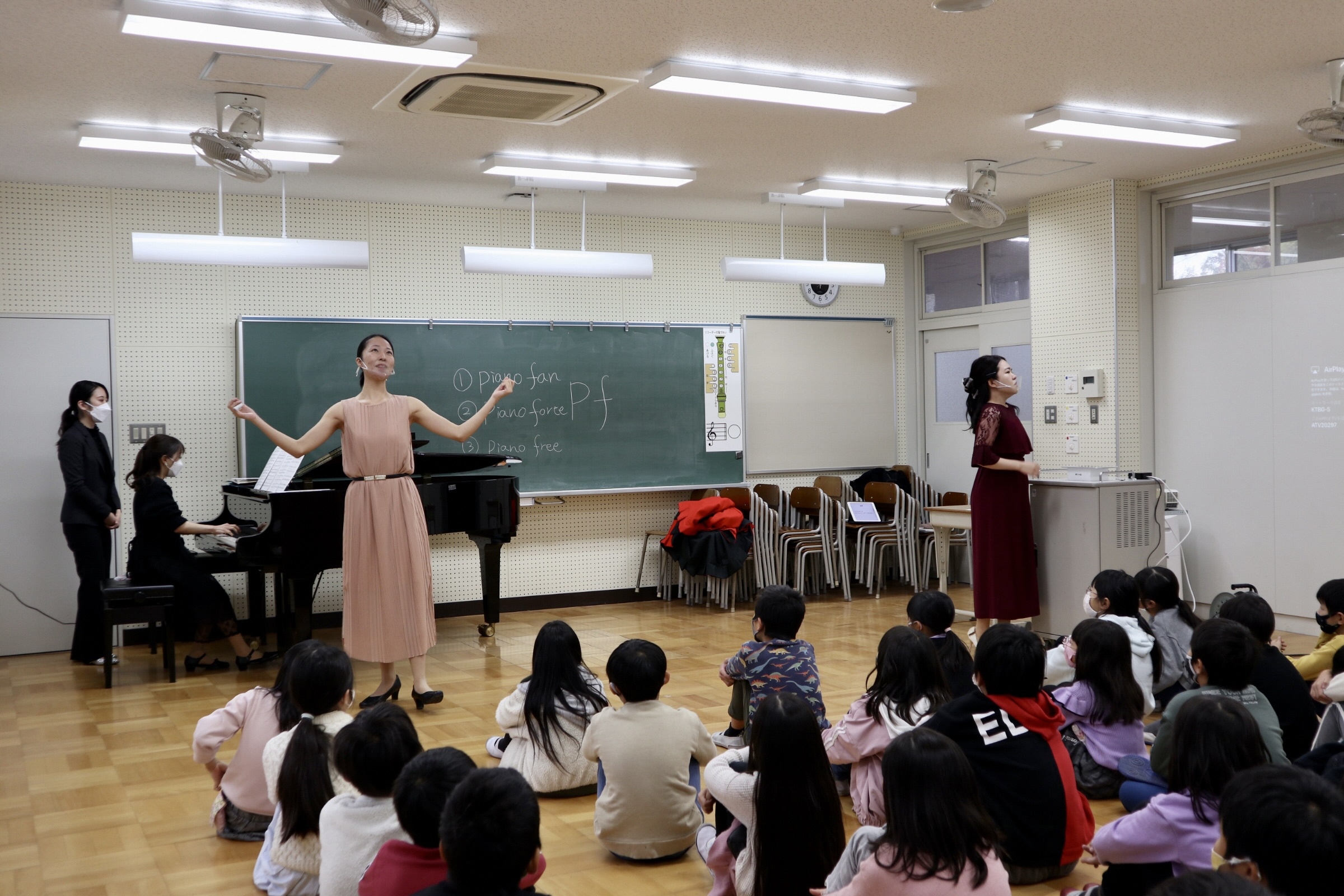 授業後、児童からは「学生さんの太鼓を叩く姿がすっごくかっこよかった!」「モーツァルトのオペラ『フィガロの結婚』の「喧嘩の二重唱」は、喧嘩しているようには聞こえなかった!」「ピアノの3つのペダルの意味を知れて良かった!」「ヴァイオリンは何種類の音を出せるのですか?」など、たくさんの意見や質問がありました。
