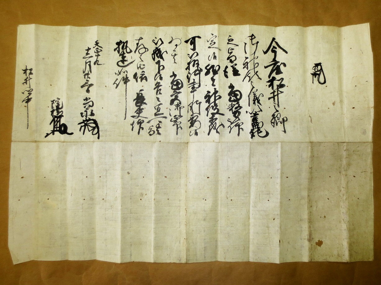 (注4)奉書:古文書の様式のひとつ。主人の意を伝えるために従者が発行する文書。
