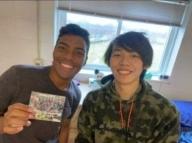 ブラジル人出身のルームメイトにPRカードを配布している様子