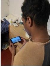 ブラジル出身のルームメイトにPR動画を見せている様子