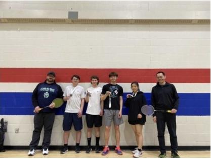 現地の人とバトミントンダブルスで金メダルをとった時の様子
