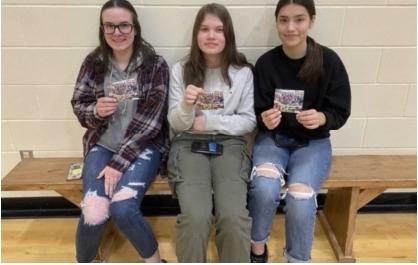体育館で昼休みに京田辺PRカードを渡したときの様子