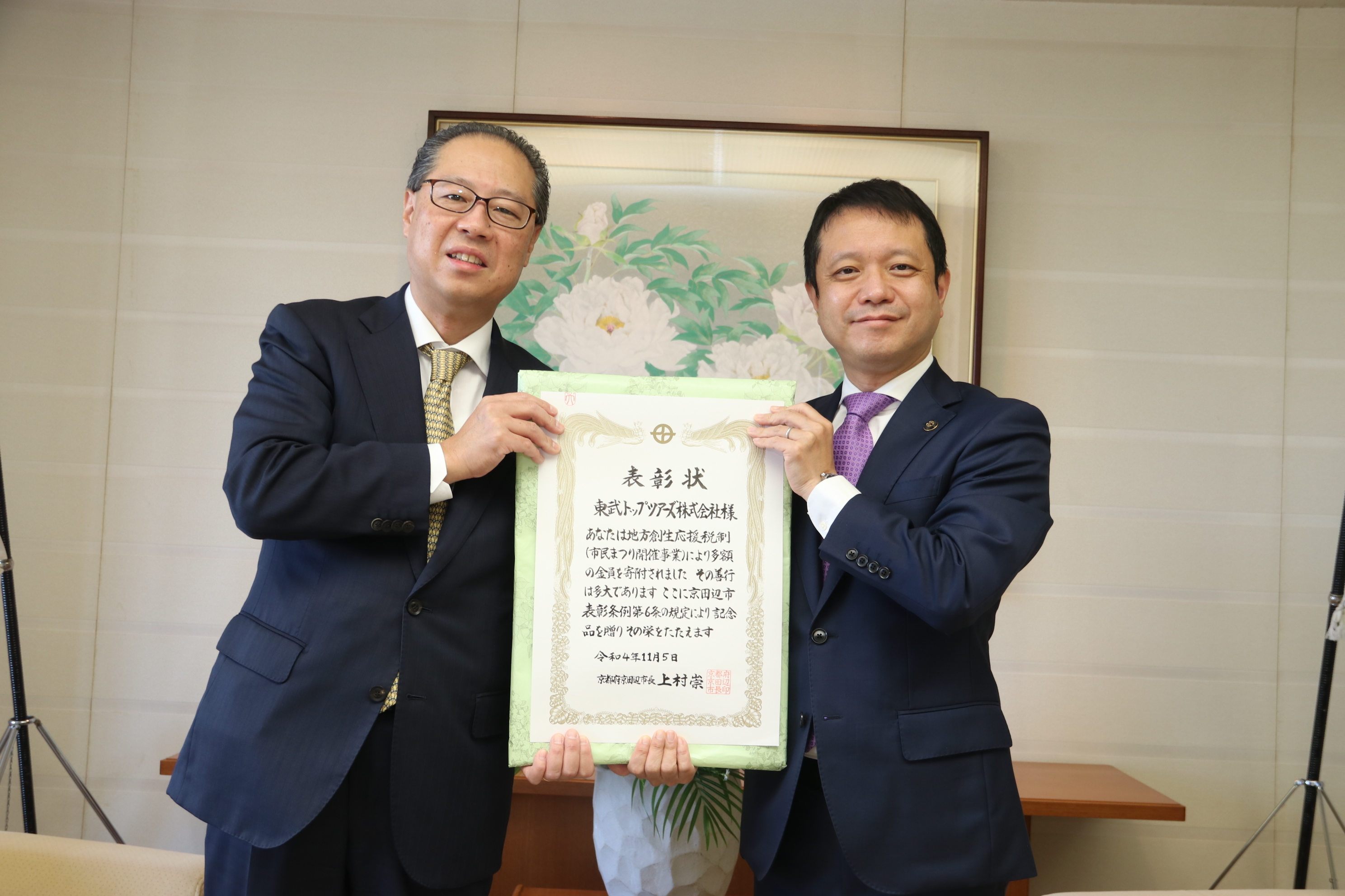 今回、企業版ふるさと納税を通じ、貴市の子育て支援事業に、微力ではございますが、貢献できましたことを、大変光栄に思います。