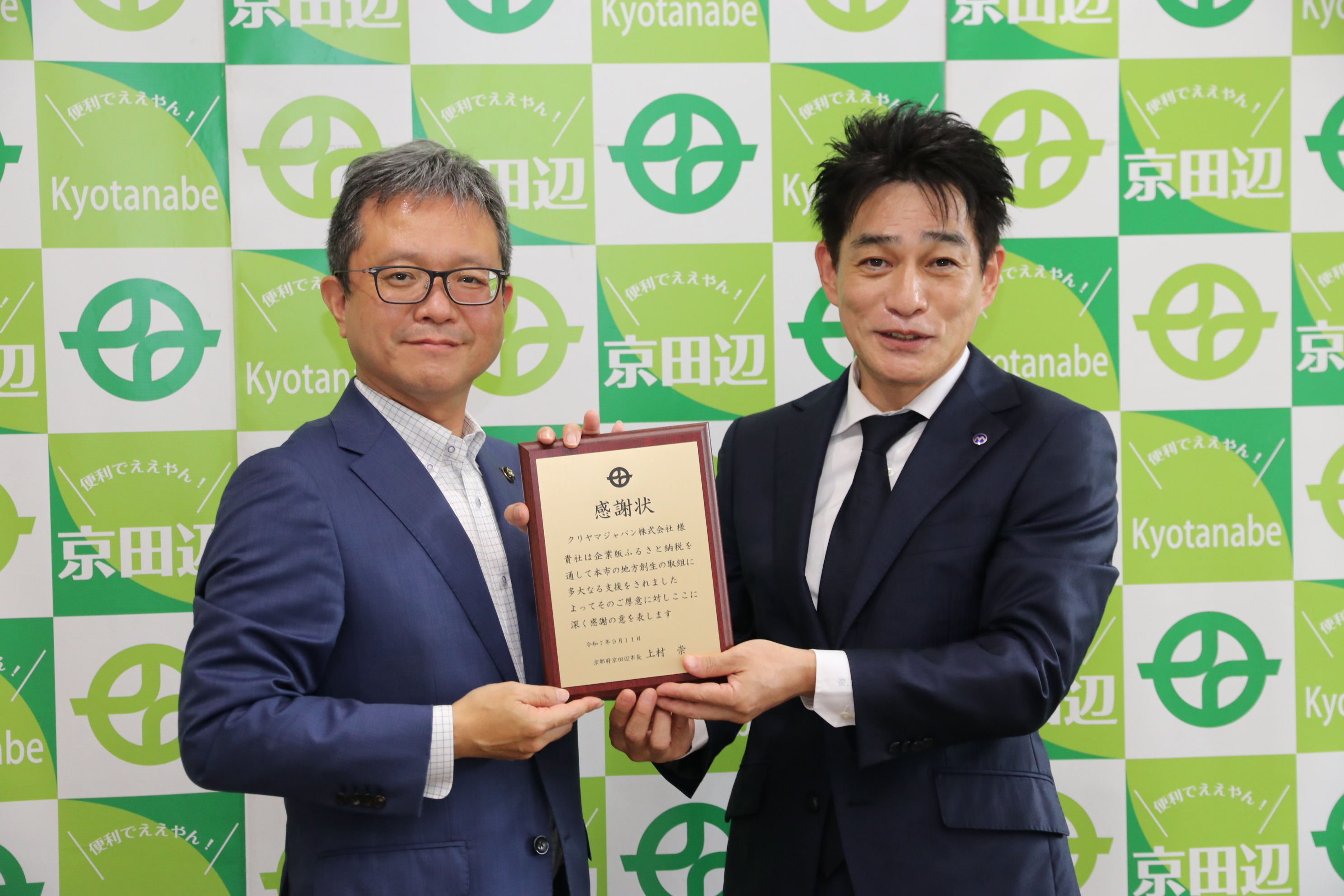 今回の寄附が京田辺市の発展の一助となれば幸いです。