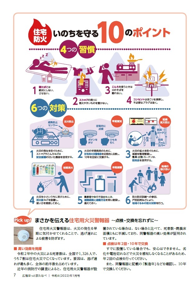 うちの市の広報がございまして、広報で特集記事を毎号させていただいてます。それで、今年の1月に消防の特集記事をさせていただいて、その中で、住宅用火災報知器についても少し掲載しています。今おっしゃっていただいたとおり、付ける啓発だけじゃなくて、電池が切れたまま放置していると「いざという時に使えませんよ」という話もしないといけないという話をさせていただきました。