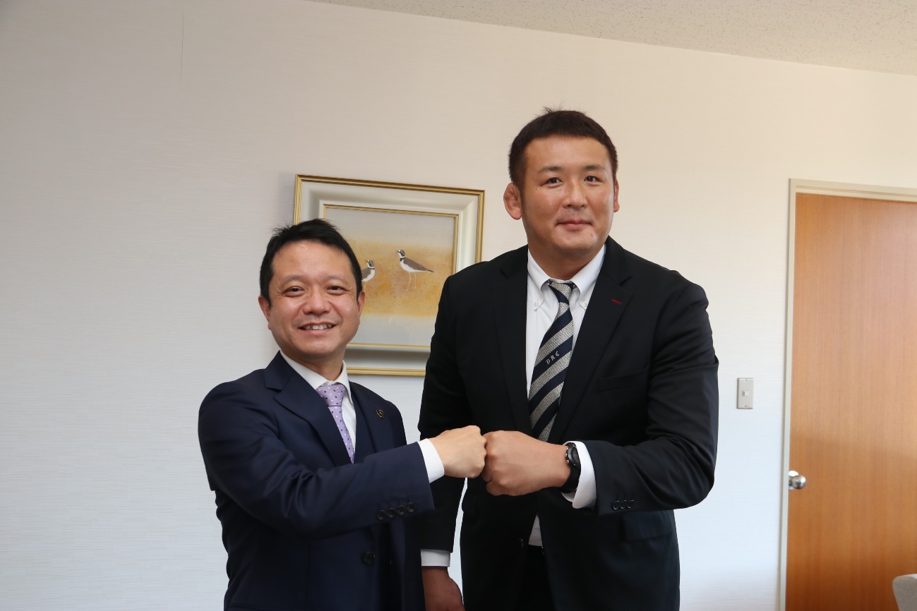 ・表敬訪問(JICA海外協力隊派遣 同志社大学ラグビー部 藤井さん)