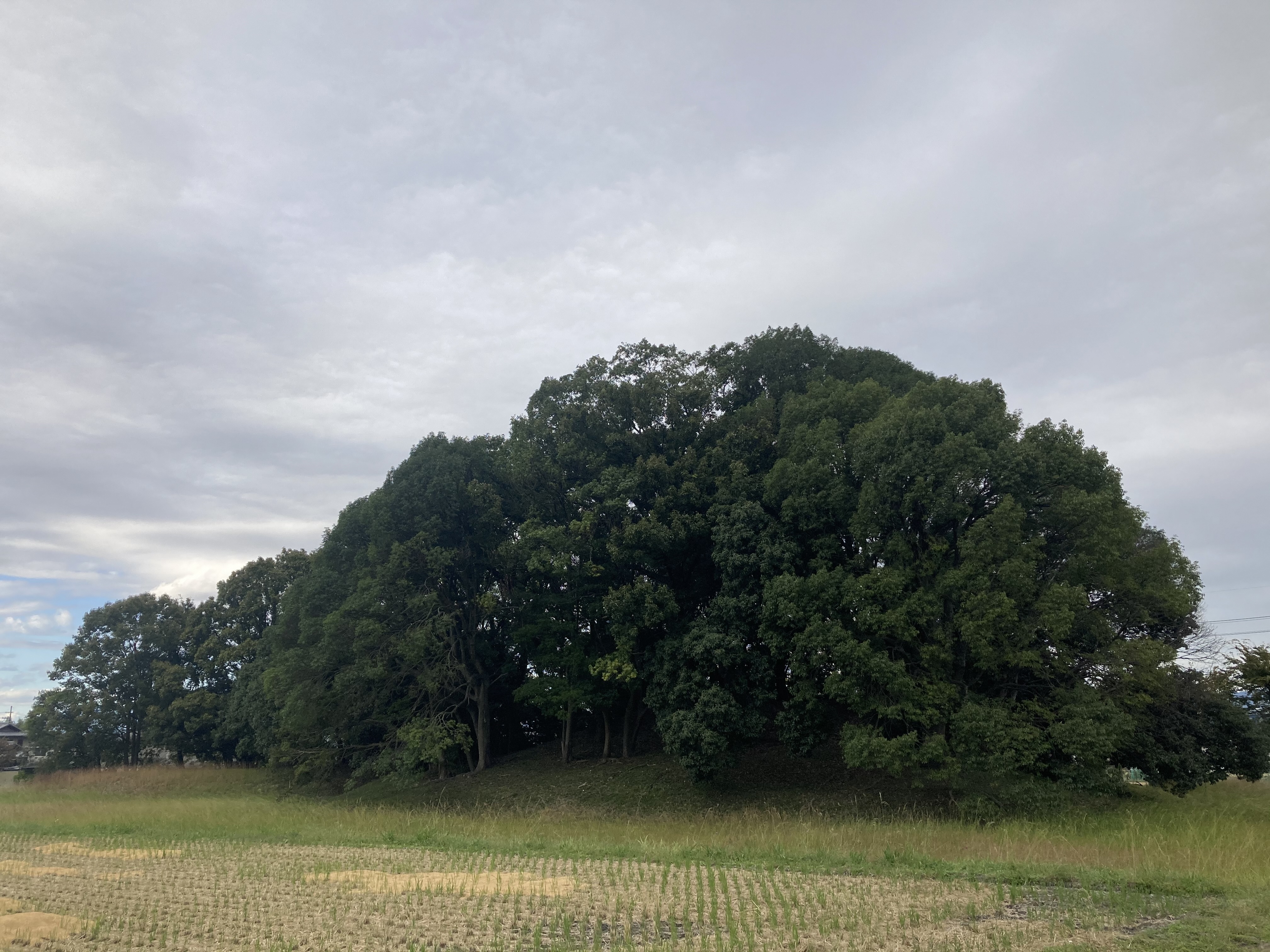 飯岡西原に所在する前方後円墳です。明治35年後円部が発掘され多くの石製品が出土しました。墳長87mを測り、京田辺市内ではもっとも大きい古墳です。現在前方部では茶畑が営まれ、のどかな風景が広がります。