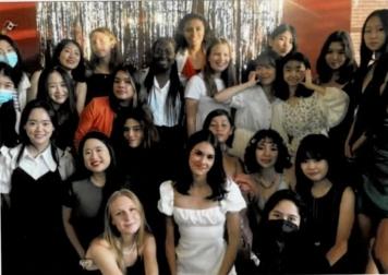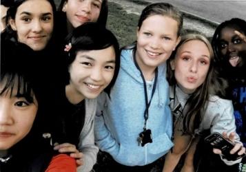 同じ学校に通ったメキシコ人、フランス人、日本人、チェコ共和国人と交流している写真