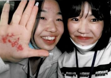 「君の名は」が好きだということで、先生の手に映画のセリフをかきました