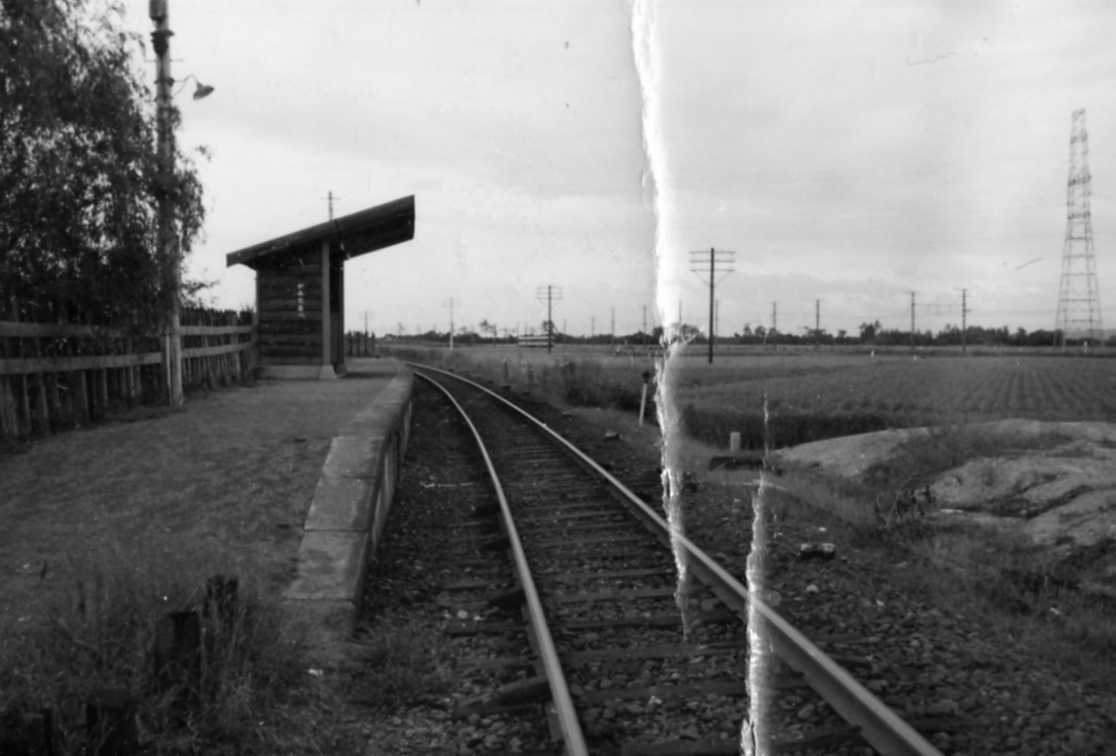 開業当時の大住駅(左)と上田辺駅(右・現JR三山木駅)(昭和27年)