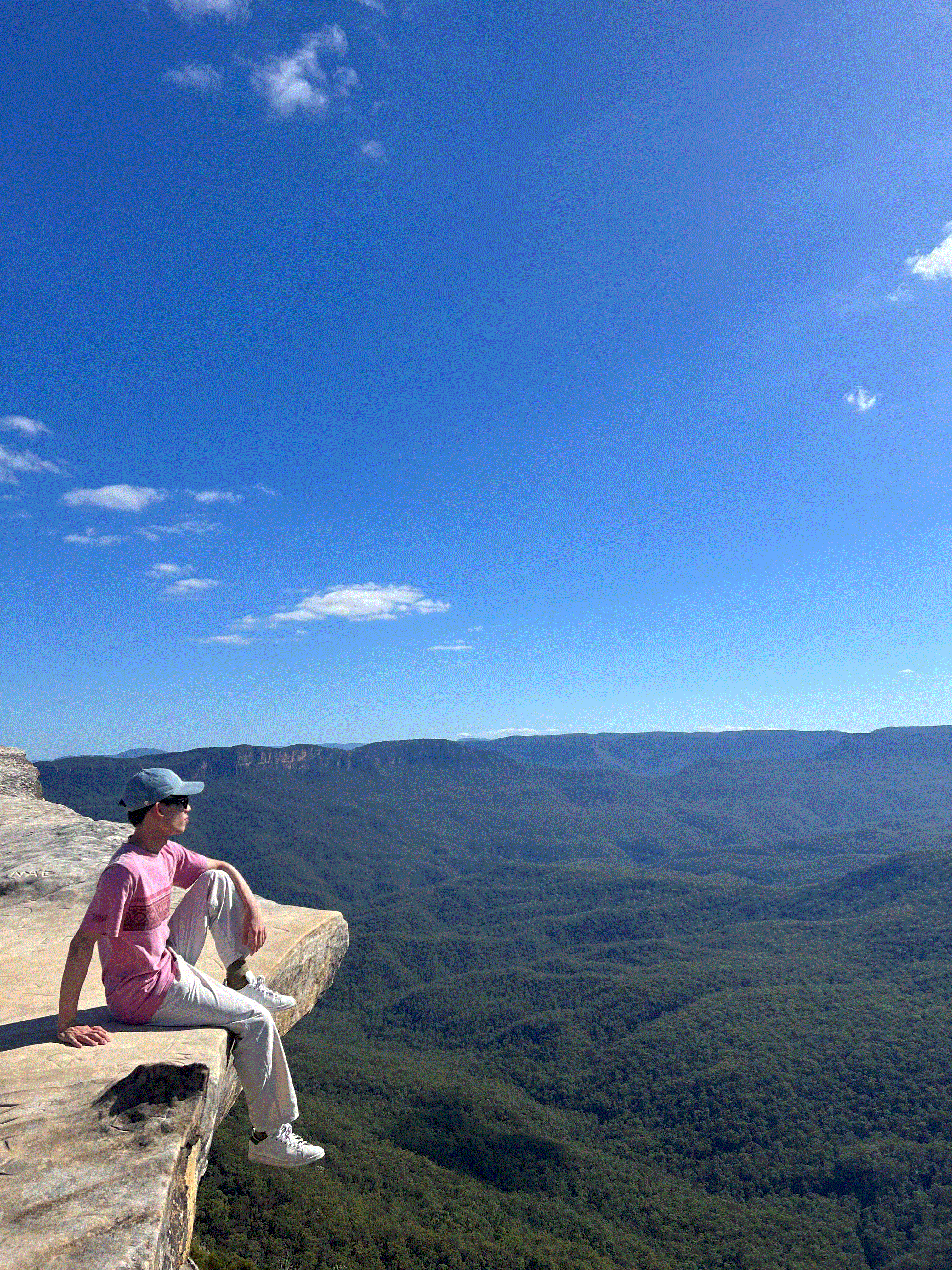 公園の崖に座って景色を眺めている写真。