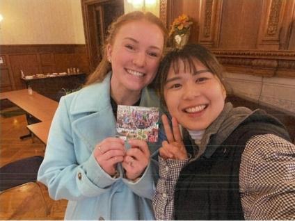 IFIという留学生のための団体のイベントに何度も参加しました。これは初めて参加したときの写真で、チームメイトと協力してミイラを早く作るというゲームをしました。ゲームをすると自然と英語を話す機会を得られるため、毎回積極的に取り組んでいました。