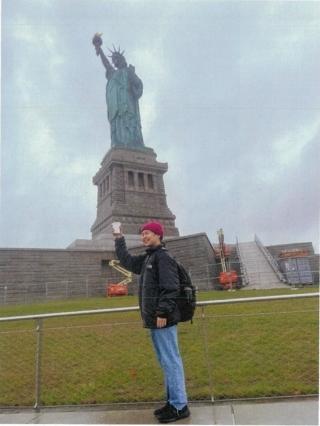 自由の女神は船で島まで行き、間近でみることができました。あいにくの天気でしたが、本物の像の光景をしっかりと目に焼き付けました。