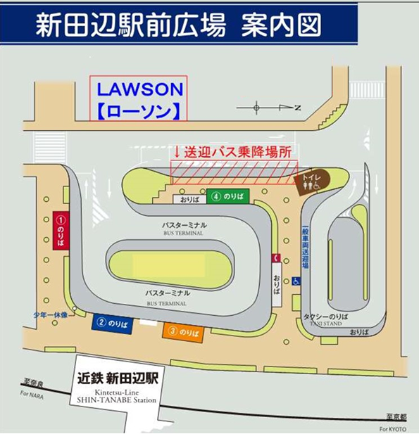 【往路】新田辺駅バスロータリー → 京田辺市役所バス停(南側) → 椿本チエイン