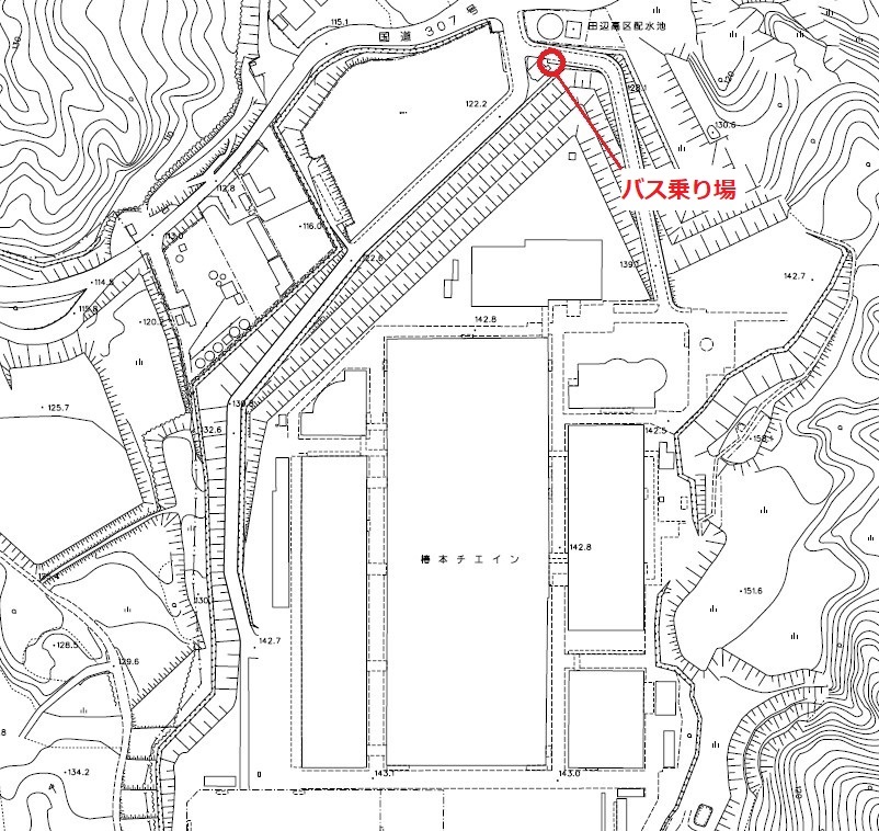 ※市役所前のバス乗降場所は「国道307号沿い路線バスのバス停」です。乗り間違えのないようにご注意ください!