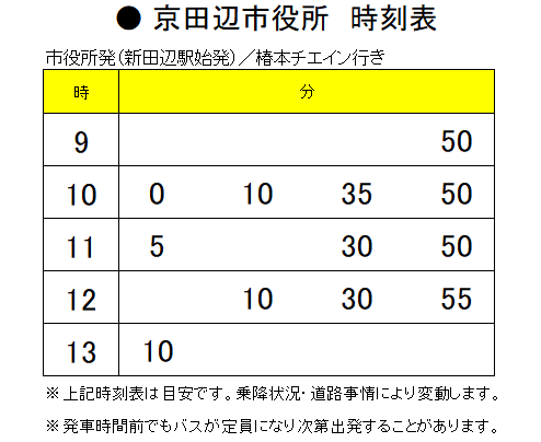 【復路】椿本チエイン → 京田辺市役所バス停(北側) → 新田辺駅バスロータリー