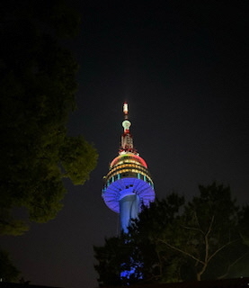韓国を代表する南山タワーです。大気汚染のレベルによりタワーの部分の色が変化します。