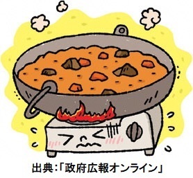 3 カセットコンロを覆うような大きな鍋や鉄板の使用は避ける。