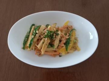 季節野菜さつま芋と人参の甘辛マヨソテー(令和5年10月1日広報掲載)