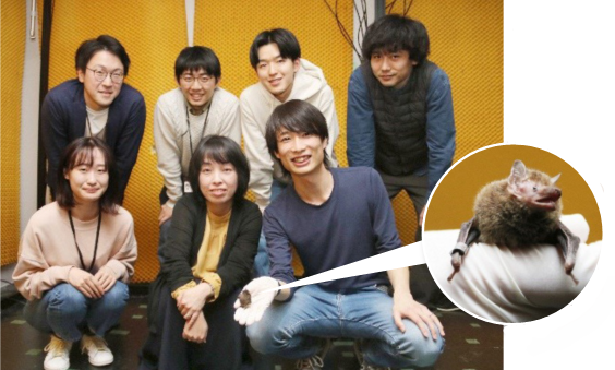 コウモリの「エコーロケーション」について、研究しています。コウモリは、暗闇でも飛び回り、目の代わりに音を使って周囲を知覚する「エコーロケーション」を行います。口や鼻の孔から超音波を出して、跳ね返ってくる音を聞くことで、物体までの距離や大きさなどの情報を得ています。これを新たな技術開発やアイデアにつなげたいと思っています。