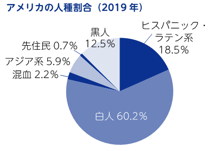 現在、先住民は少なく、移民の子孫(祖父母が海外から来たなど)である人がほとんどです。多くの人種が集まる国であることから、人種差別に関する難題がよく議論されます。例えば、黒人に対する暴力事件などは、日本でもニュースで見聞きすることがあると思います。アメリカではダイバシティー(多様性)が推進され、大学や企業でさまざまな人材を募集している場合が多いです。