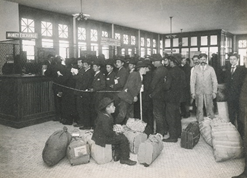 かつて、ヨーロッパ移民が最初にアメリカに踏み入れる土地だったエリス島の移民局 (1910 年)