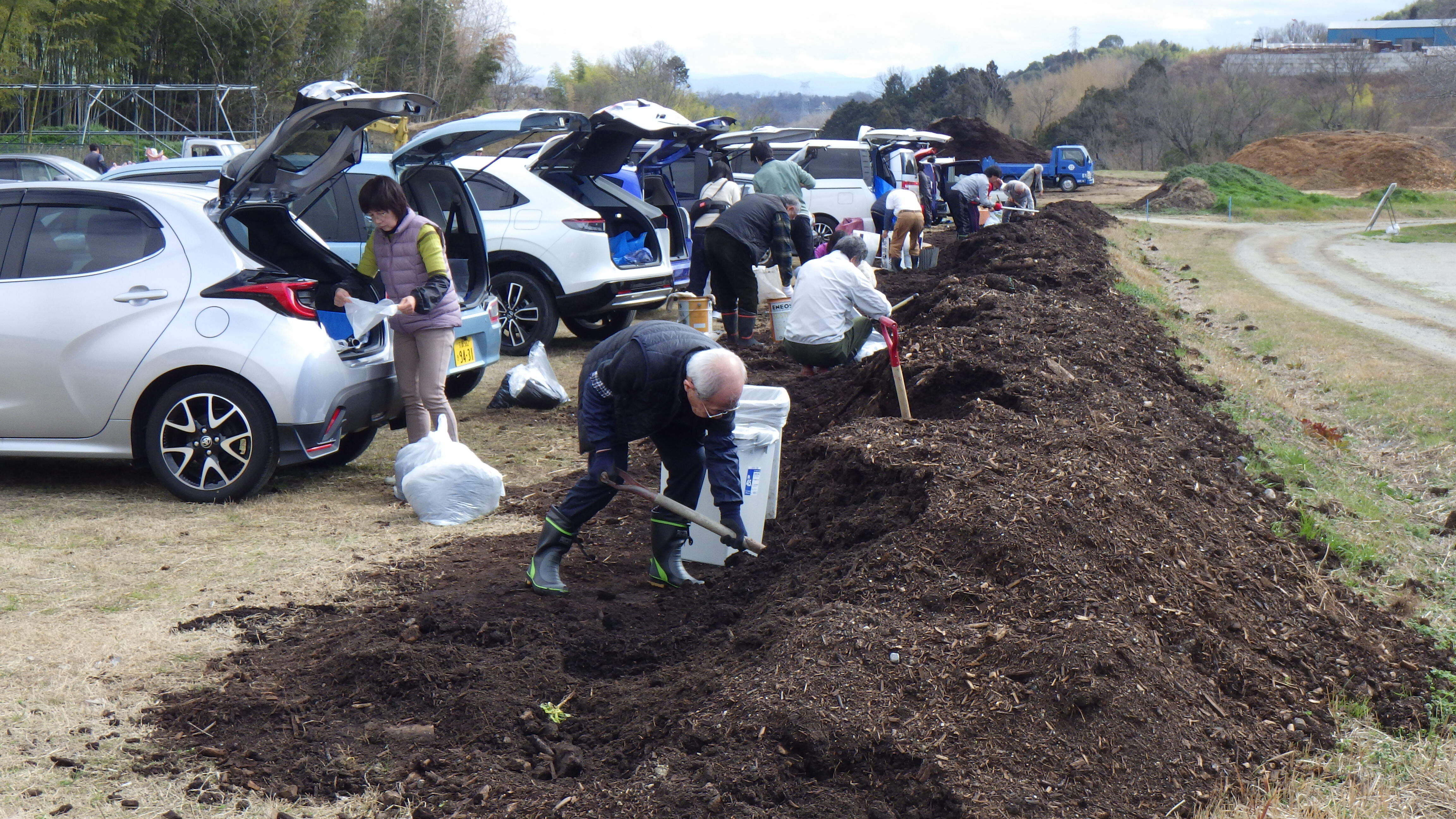 - 樹木チップを入れる袋とスコップをご持参ください。