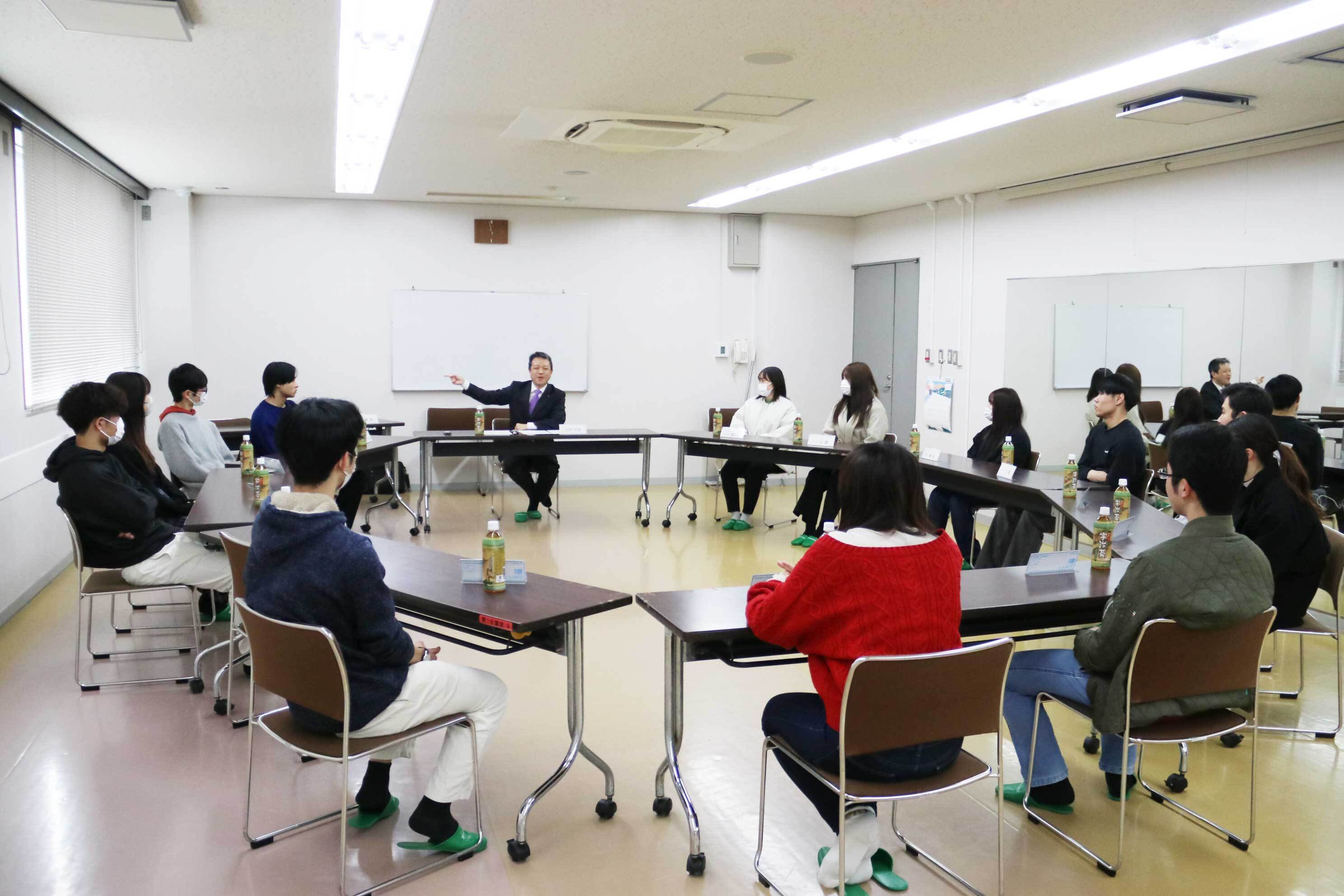 京田辺を「ずっと住み続けたいまち」「また戻って来たいまち」にするためにはどうすればよいか、若い世代の声を聞くため「二十歳のつどい」運営スタッフの皆さんと「将来の夢と京田辺のまちづくり」をテーマに意見交換を行いました。