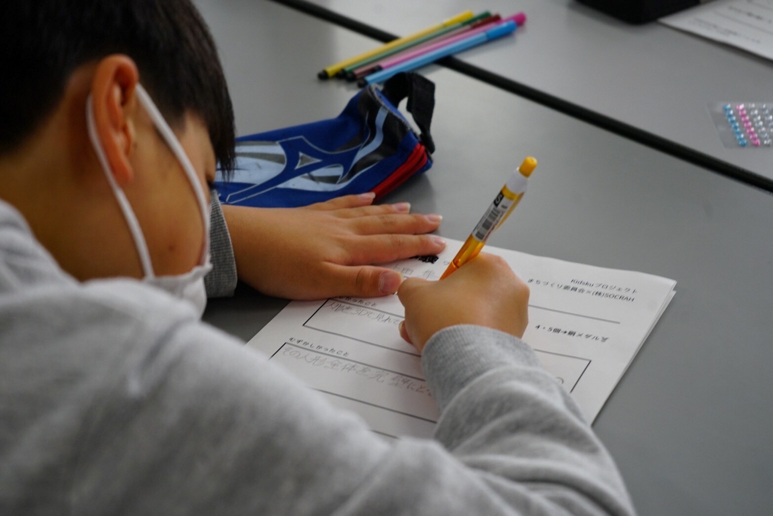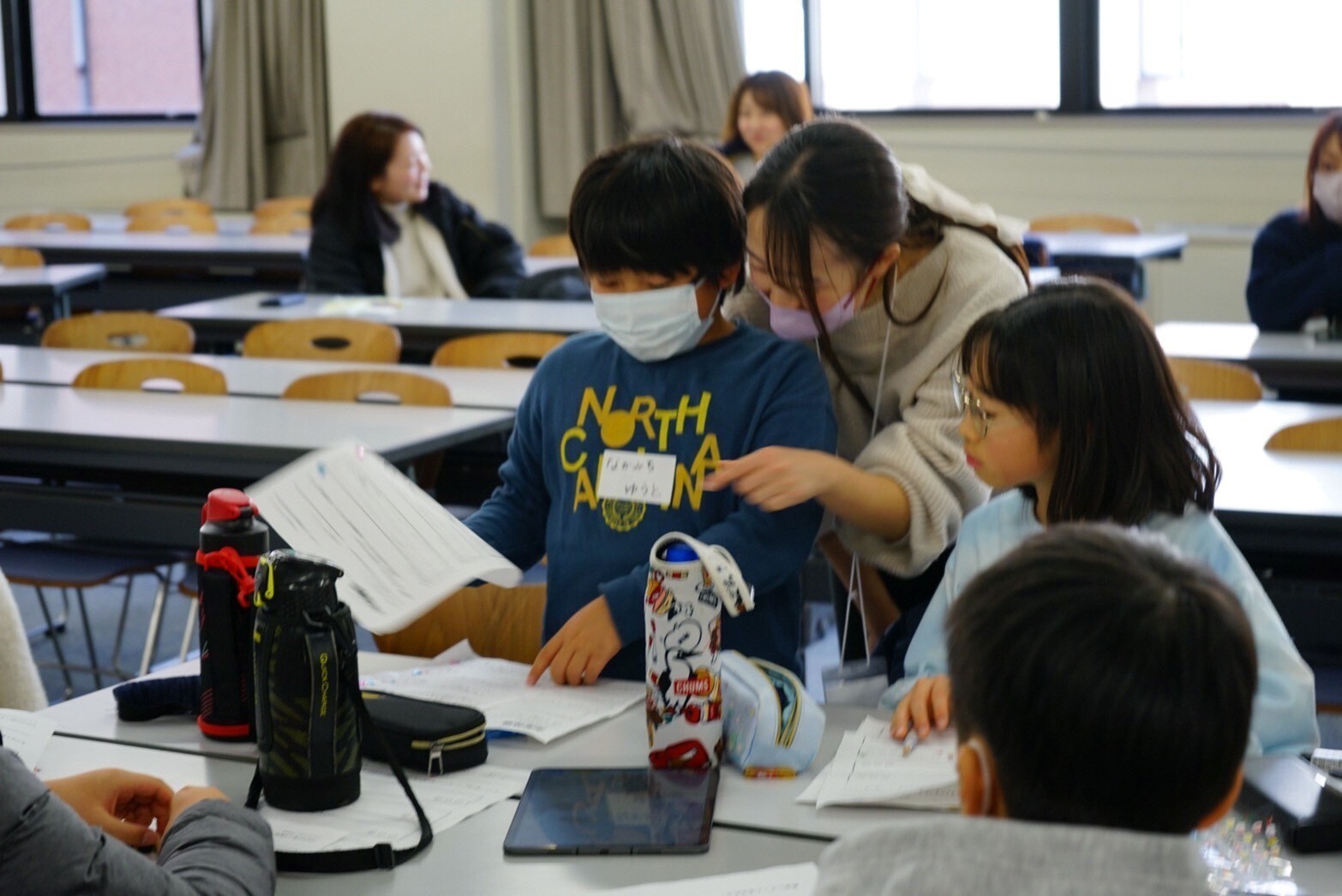 大学生のサポートのもと、小学生は気づいたことをその都度メモをし、グループ内発表、全体発表を行いました。