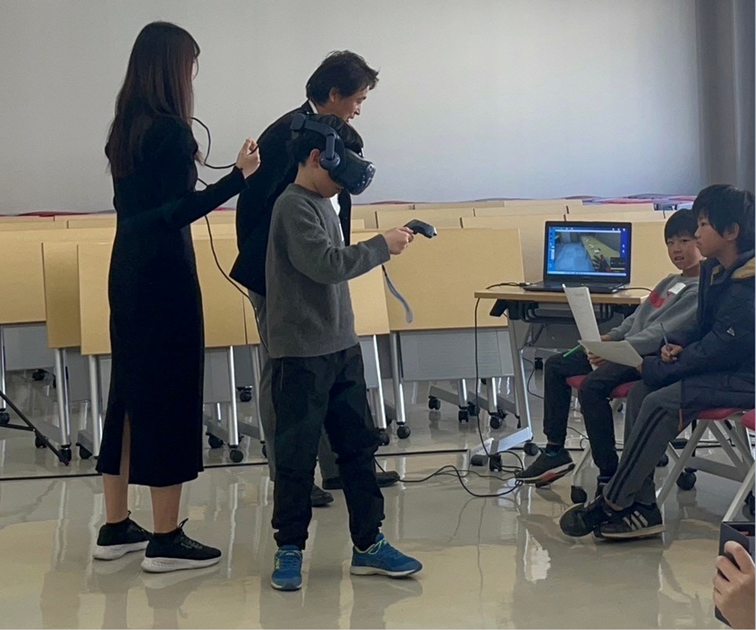 (2)VR体験:ヘッドセットやコントローラーを使って、VRを体験しました。