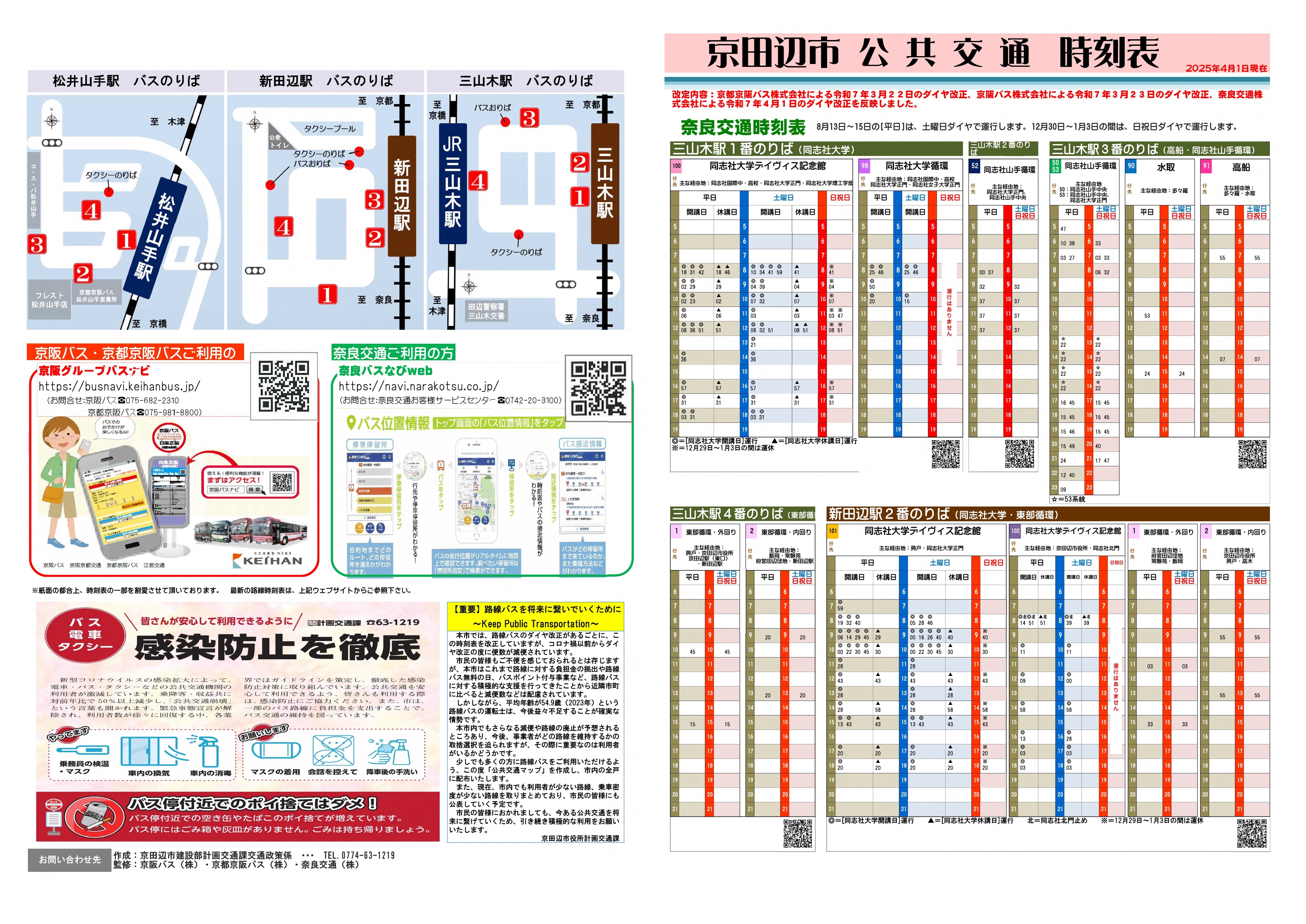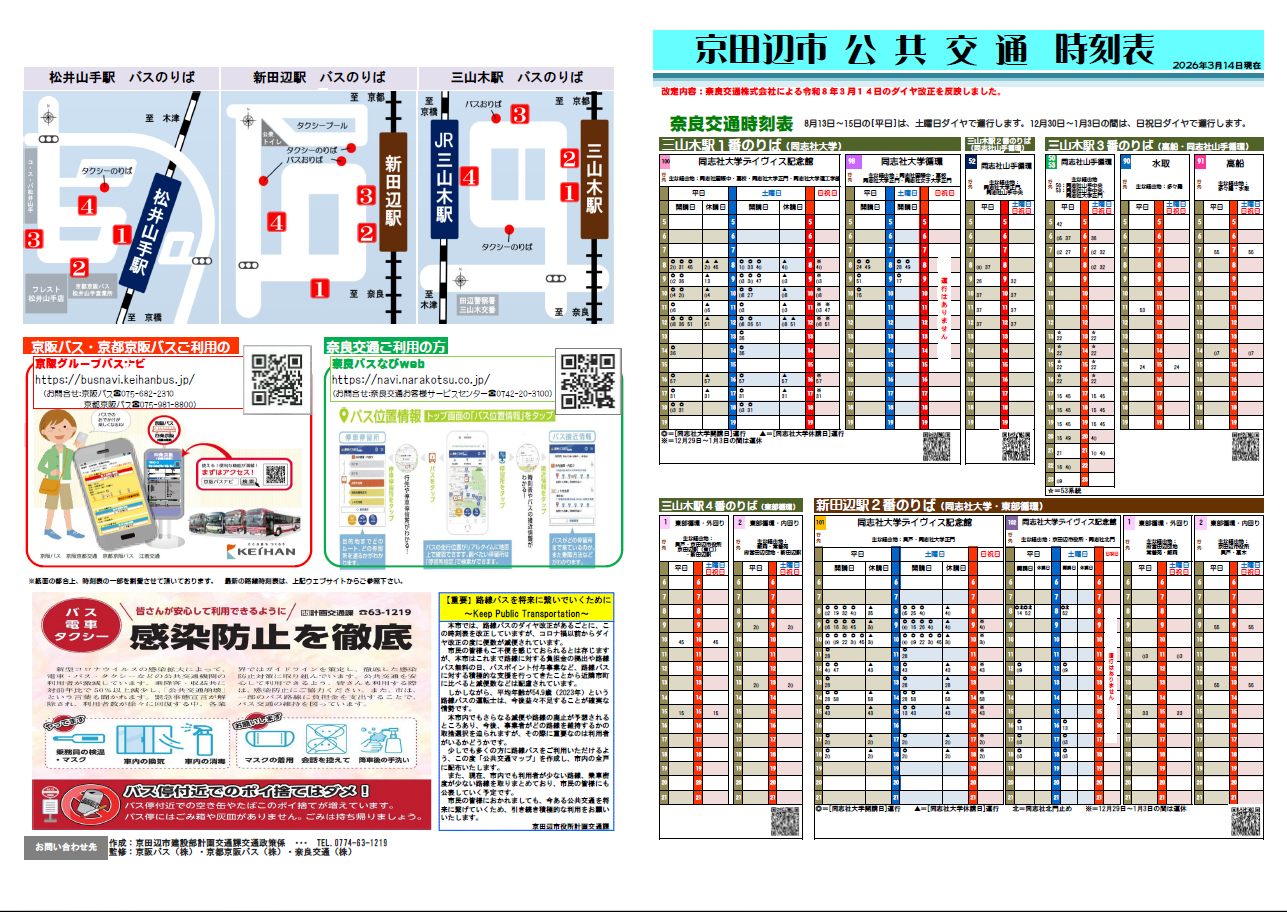 松井山手駅、新田辺駅、三山木駅の路線バス時刻表を掲載します。