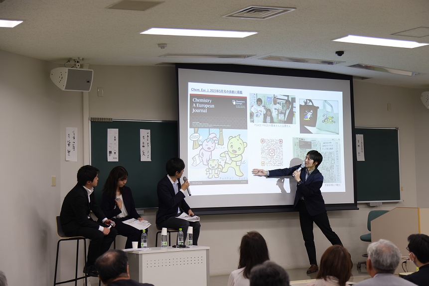 理工学部教授やハリス理化学研究所助教とトークセッションを行う桝さん