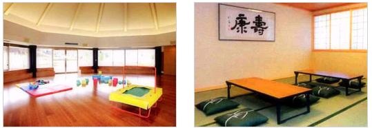 | 屋内施設 | ふれあいルーム、娯楽ルーム、浴場(利用時間11時~15時)、カラオケルーム、健康増進ルーム、調理実習ルーム、研修ルーム |