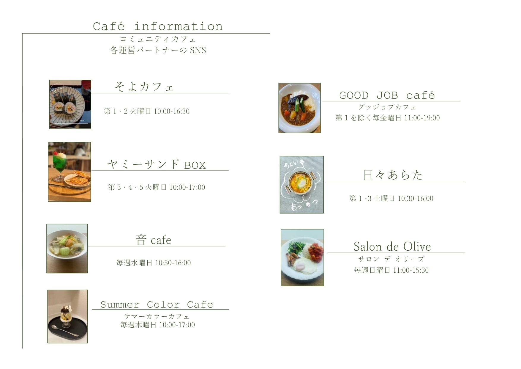 コミュニティカフェ営業カレンダー