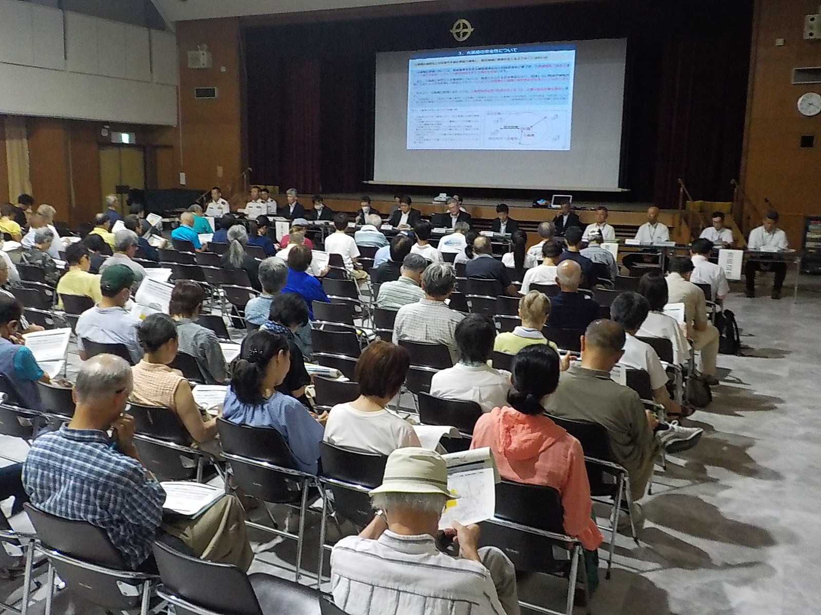 陸上自衛隊祝園分屯地における火薬庫等の整備に係る工事説明会を普賢寺地域の住民の皆様を対象に開催し、防衛省近畿中部防衛局企画部長及び調達部長から祝園分屯地における火薬庫等の整備に係る工事の説明があり、約90人の方にご参加いただきました。