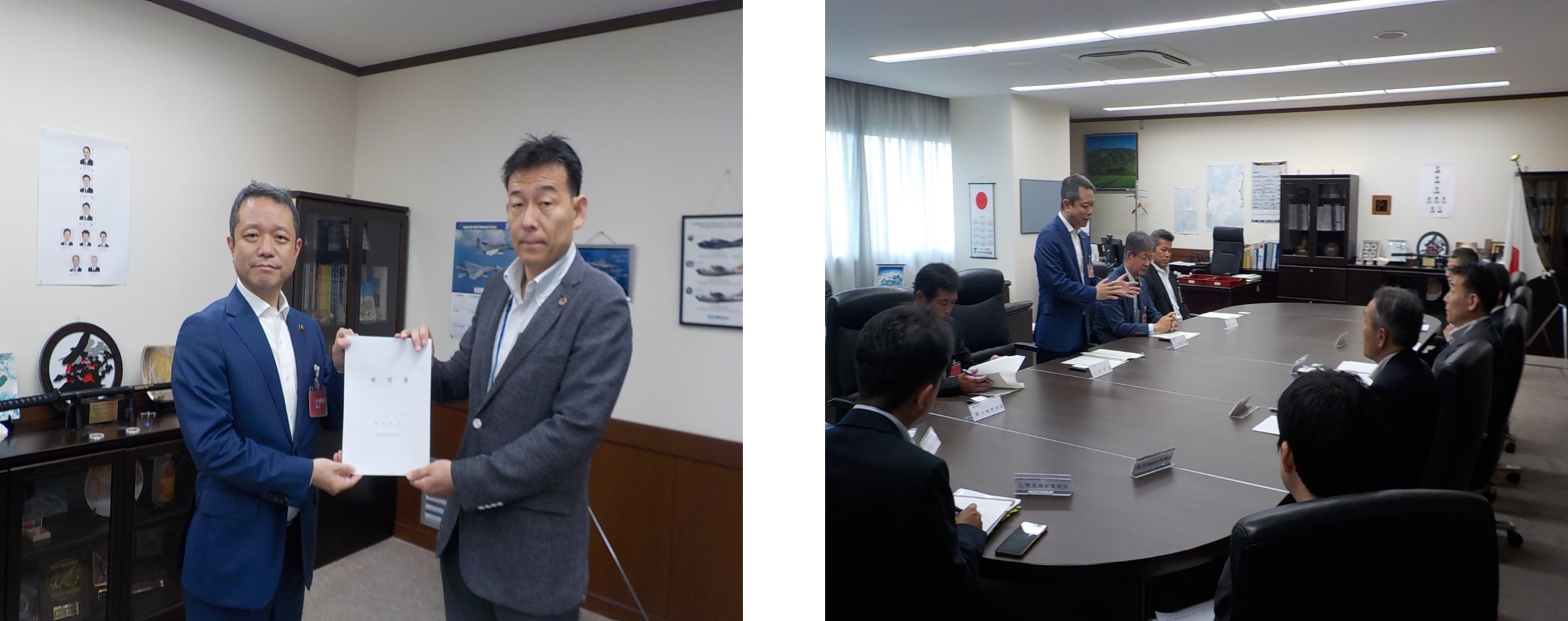 市長から防衛省近畿中部防衛局長に対し、陸上自衛隊祝園分屯地における火薬庫等整備にかかる要望の提出を行いました。