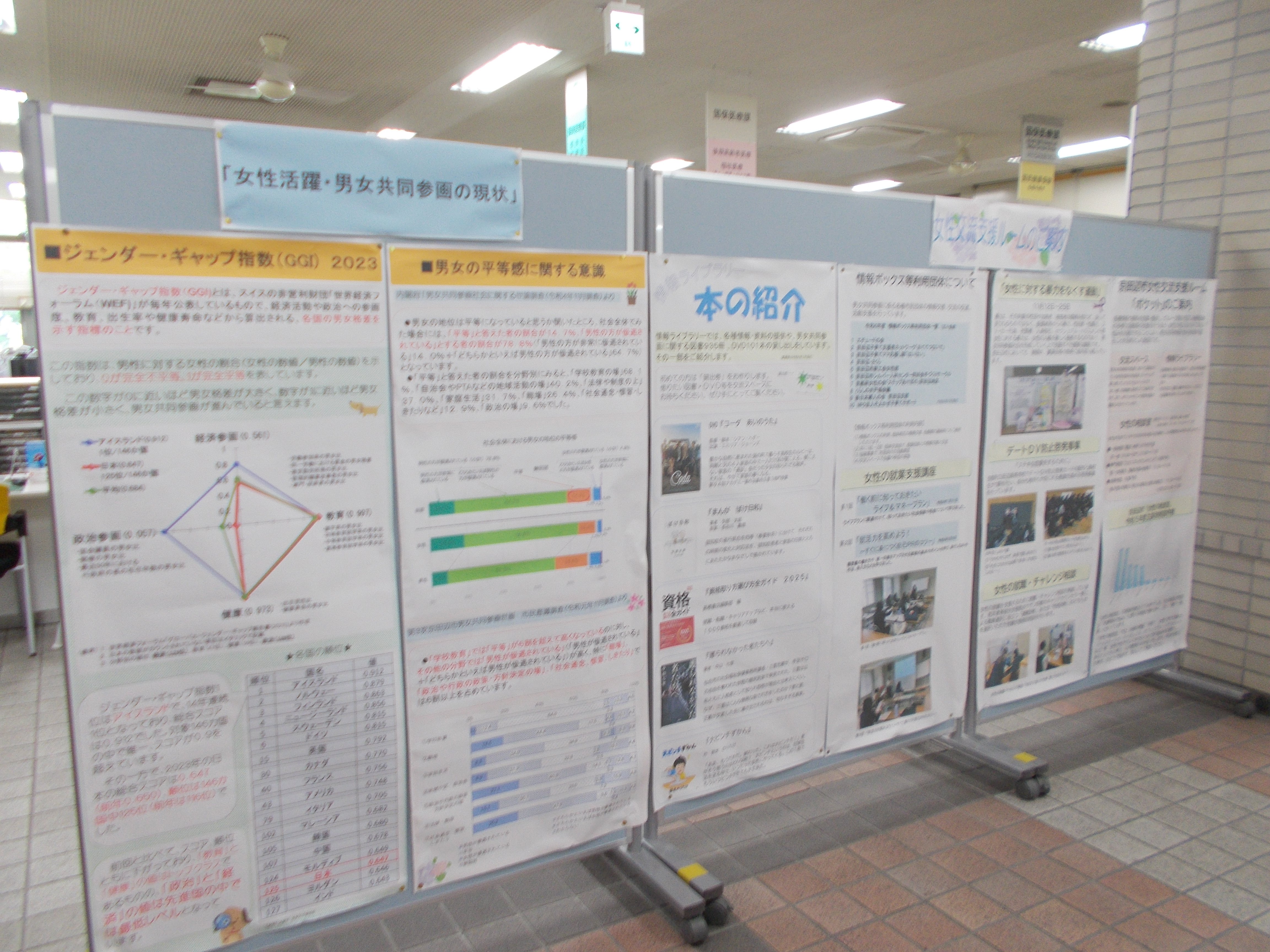 「女性活躍・男女共同参画の現状」と「女性交流支援ルーム」についての紹介(市役所2階ロビー)